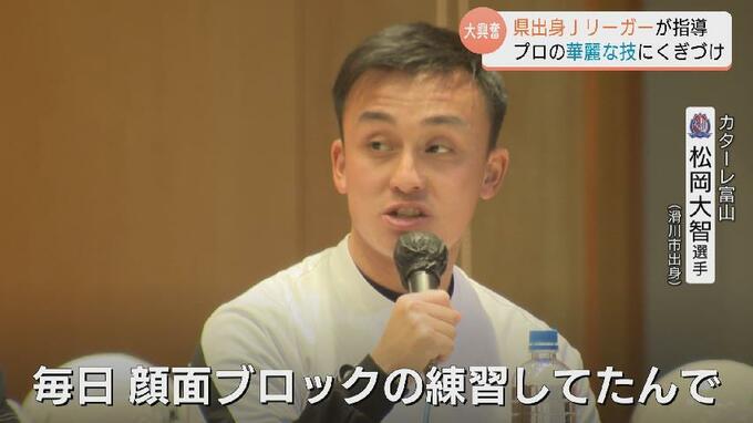 「僕は顔面ブロックです。毎日顔面ブロックの練習してたんで、ああやって大事なところ(残留を決めたカターレ昨季最終節)で出せるので、練習は大事だなって思いました」
