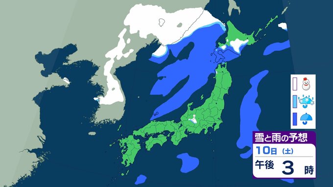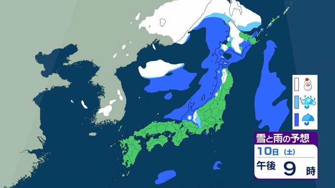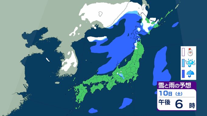 ニュースクリップ 【気象情報】北陸地方 8日夜にかけて落雷、竜巻、激しい突風に注意…上空にマイナス30℃の寒気流入 冬型の気圧配置で急な天候悪化に警戒を【雨と雪のシミュレーション】 2026年1月7日(水) 17:45 国内 天気 10日(土)雨と雪のシミュレーション