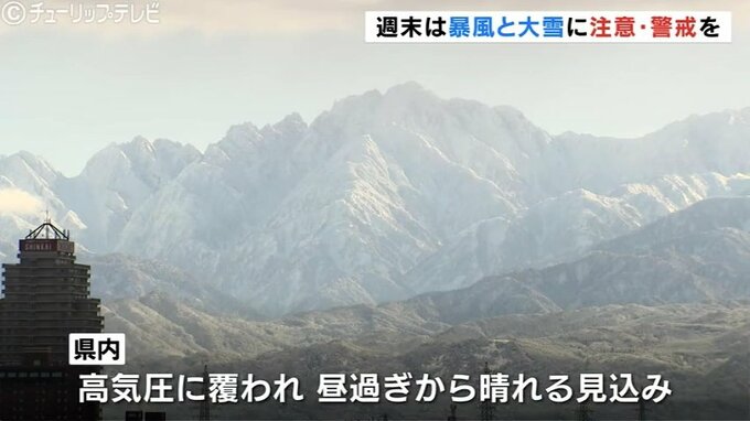 9日の富山県内は曇りで午後から次第に晴れる見込みとなっています。ただ、週末は強い冬型の気圧配置の影響で暴風や大雪に警戒が必要です。