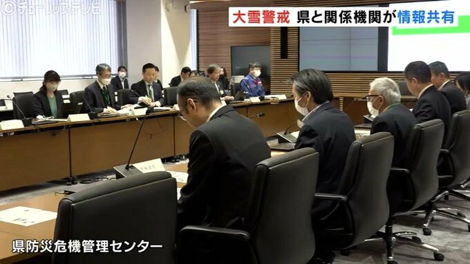 あすからの3連休は上空に強い寒気が入り山間部を中心に大雪となる恐れがあることから、県は関係機関を集め、降雪量などの情報を共有しました。