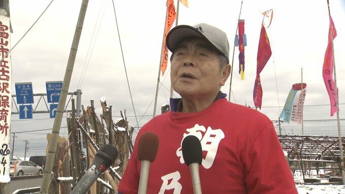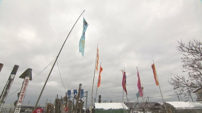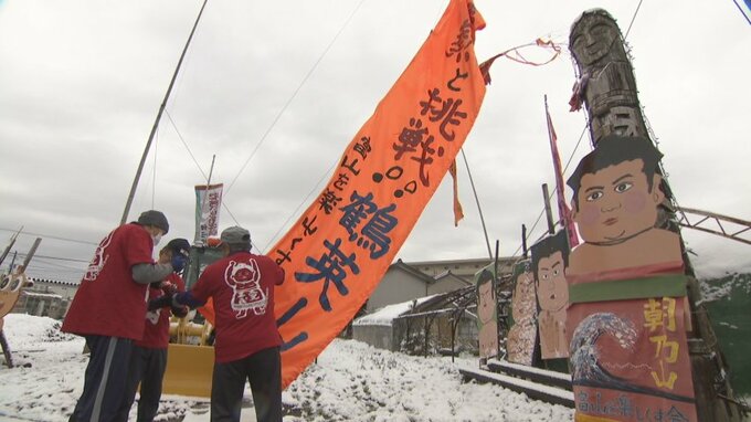 11日から始まる大相撲初場所を前に、富山市出身で幕内復帰した朝乃山を応援するため、地元の支援者らがのぼり旗をかかげました。
