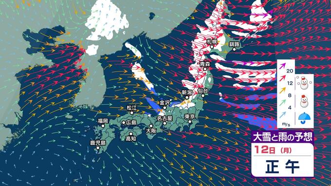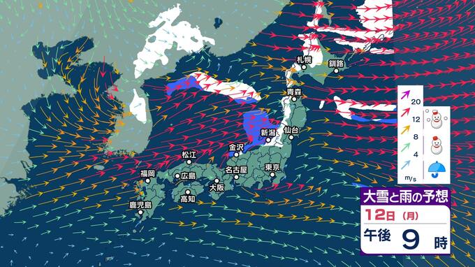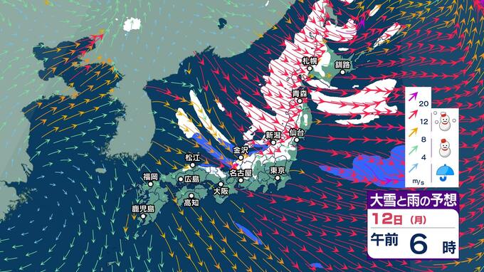 ニュースクリップ 関東甲信地方は11日昼前にかけて大気の状態が不安定に 落雷や竜巻などの激しい突風、急な強い雨に注意 降ひょうのおそれも【大雪と雪のシミュレーション】 2026年1月10日(土) 07:54 国内 天気 12日(月)大雪と雨シミュレーション