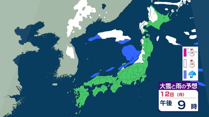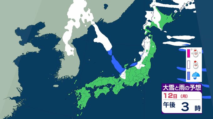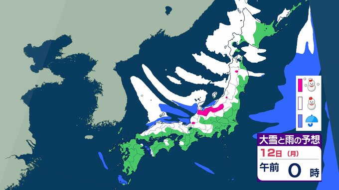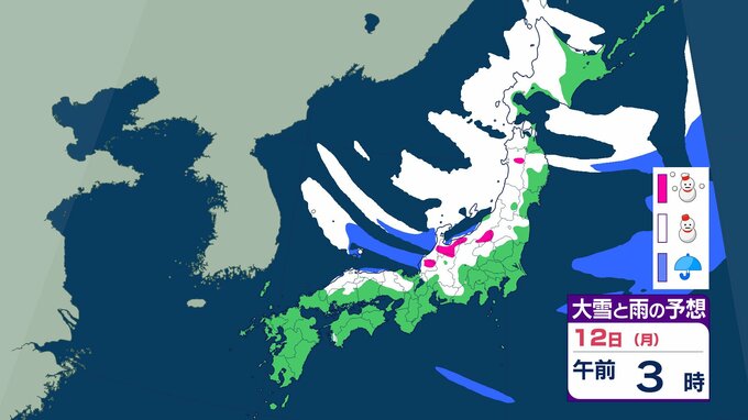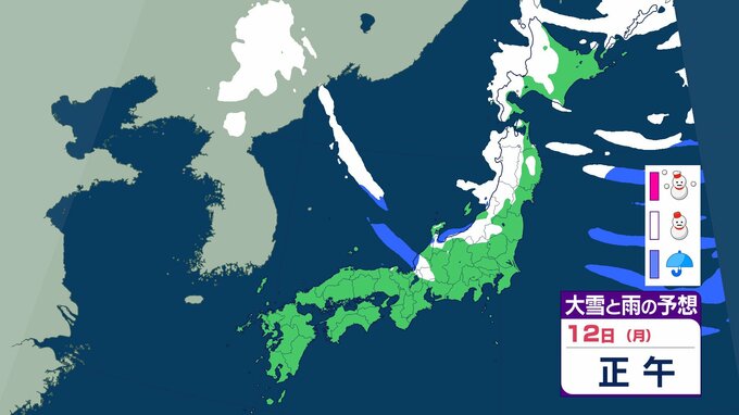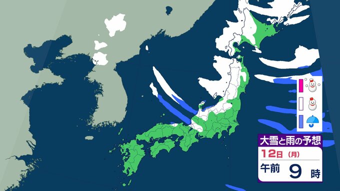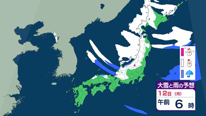 ニュースクリップ 【大雪情報】中国地方 12日朝まで多い所で山陰50センチ 山陽40センチの降雪か 12日昼前にかけて大雪となる見込み 普段雪の少ない山陽南部の平地でも大雪となる所も…強風や雪による見通しの悪化に十分注意を【大雪と雨のシミュレーション】 2026年1月10日(土) 18:27 国内 天気 12日(祝・月)の雨と雪のシミュレーション