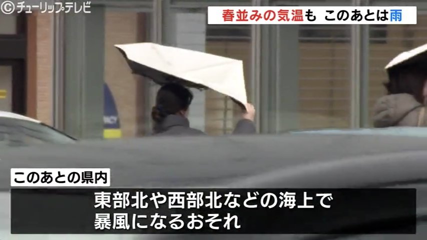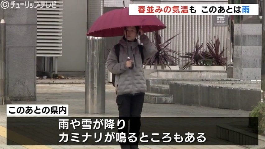 13日朝の富山県内は各地で3月から4月並みの気温を観測するなど比較的暖かくなりましたがこのあとは天気が崩れ雨が降る見込みです。