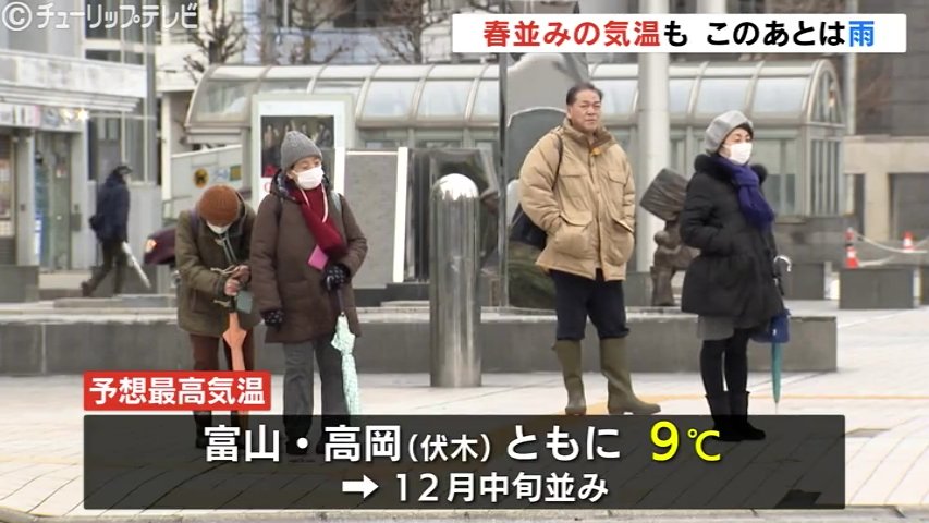 日中の予想最高気温は富山と高岡市の伏木ともに9℃となっています。