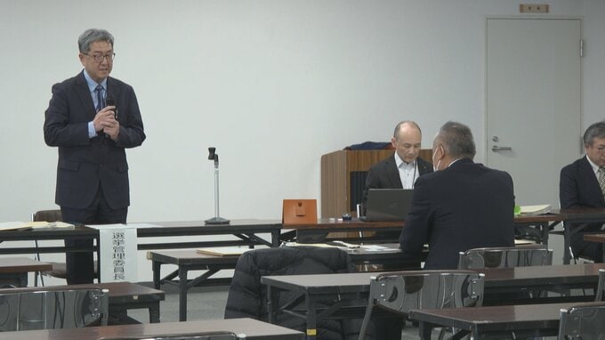 出席したのは2期目に向け立候補を表明している水野達夫市長の陣営のみで、立候補の届け出や選挙で使う車両の手続きなどの説明を受けました。