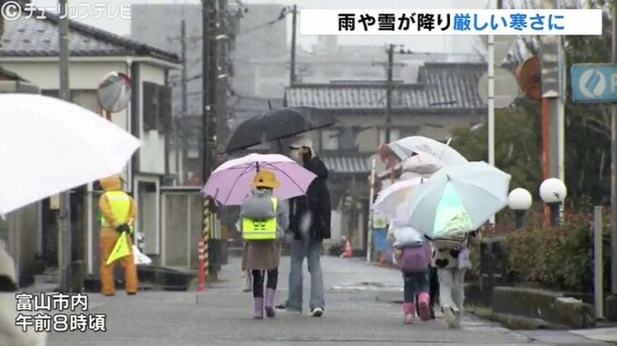 富山県内は14日朝から雪や雨が降っています。日中は気温があまり上がらず厳しい寒さになる見込みです。