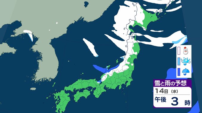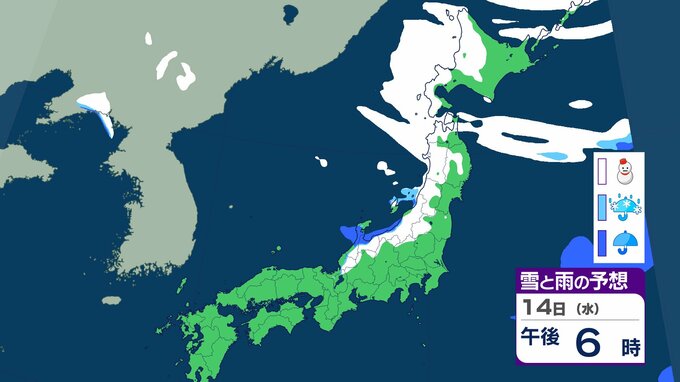 ニュースクリップ 【気象情報】発達中の低気圧で北日本と北陸は大荒れ 15日にかけて暴風雪や高波に警戒 北海道は最大瞬間風速35mの猛吹雪 東北、北陸は6mの高波に注意【雪と雨のシミュレーション】 2026年1月14日(水) 15:04 国内 天気 14日(水)の雨と雪のシミュレーション