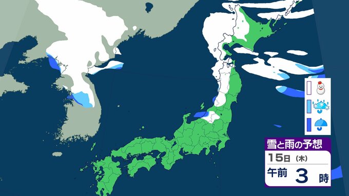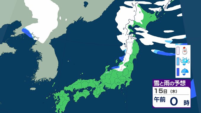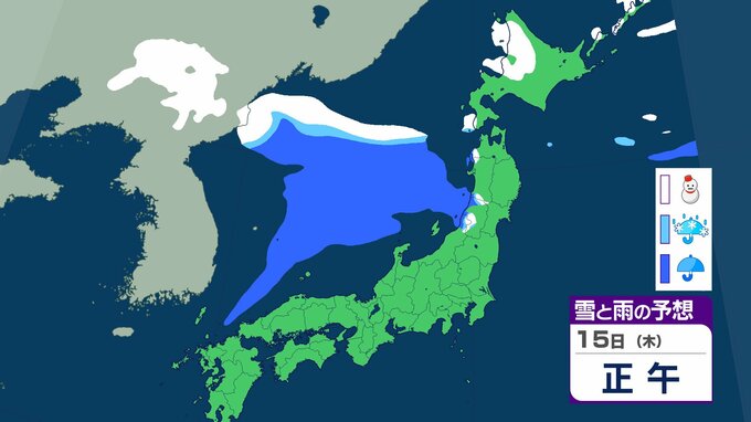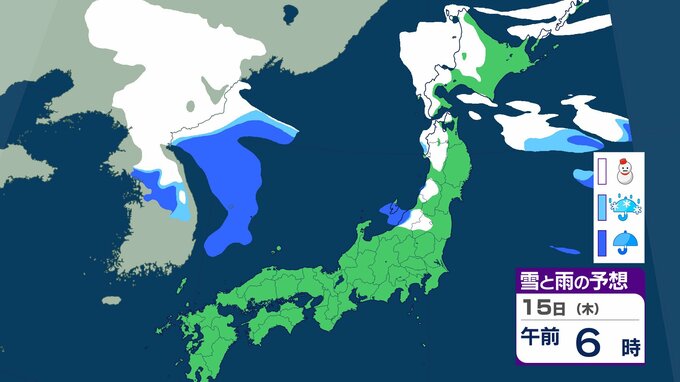 ニュースクリップ 【気象情報】発達中の低気圧で北日本と北陸は大荒れ 15日にかけて暴風雪や高波に警戒 北海道は最大瞬間風速35mの猛吹雪 東北、北陸は6mの高波に注意【雪と雨のシミュレーション】 2026年1月14日(水) 15:04 国内 天気 15日(木)の雨と雪のシミュレーション