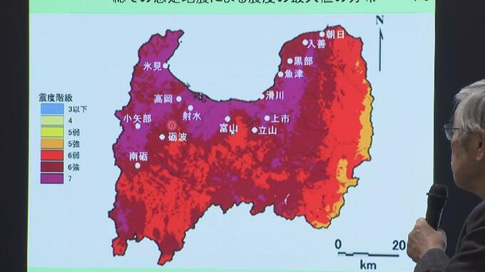 地震の規模を表すマグニチュードは7.4で、富山市、射水市、高岡市で最大震度7と想定されています。