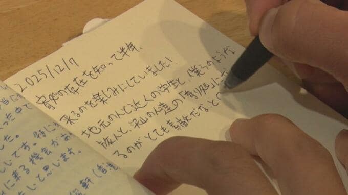 「旅人交換日記」は県外や海外から訪れた人のメッセージで埋め尽くされています。