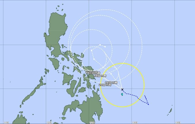 72時間後の18日午後3時にはフィリピンの東の北緯14度25分、東経125度20分を中心とする半径260キロの円内に達する見込みです。