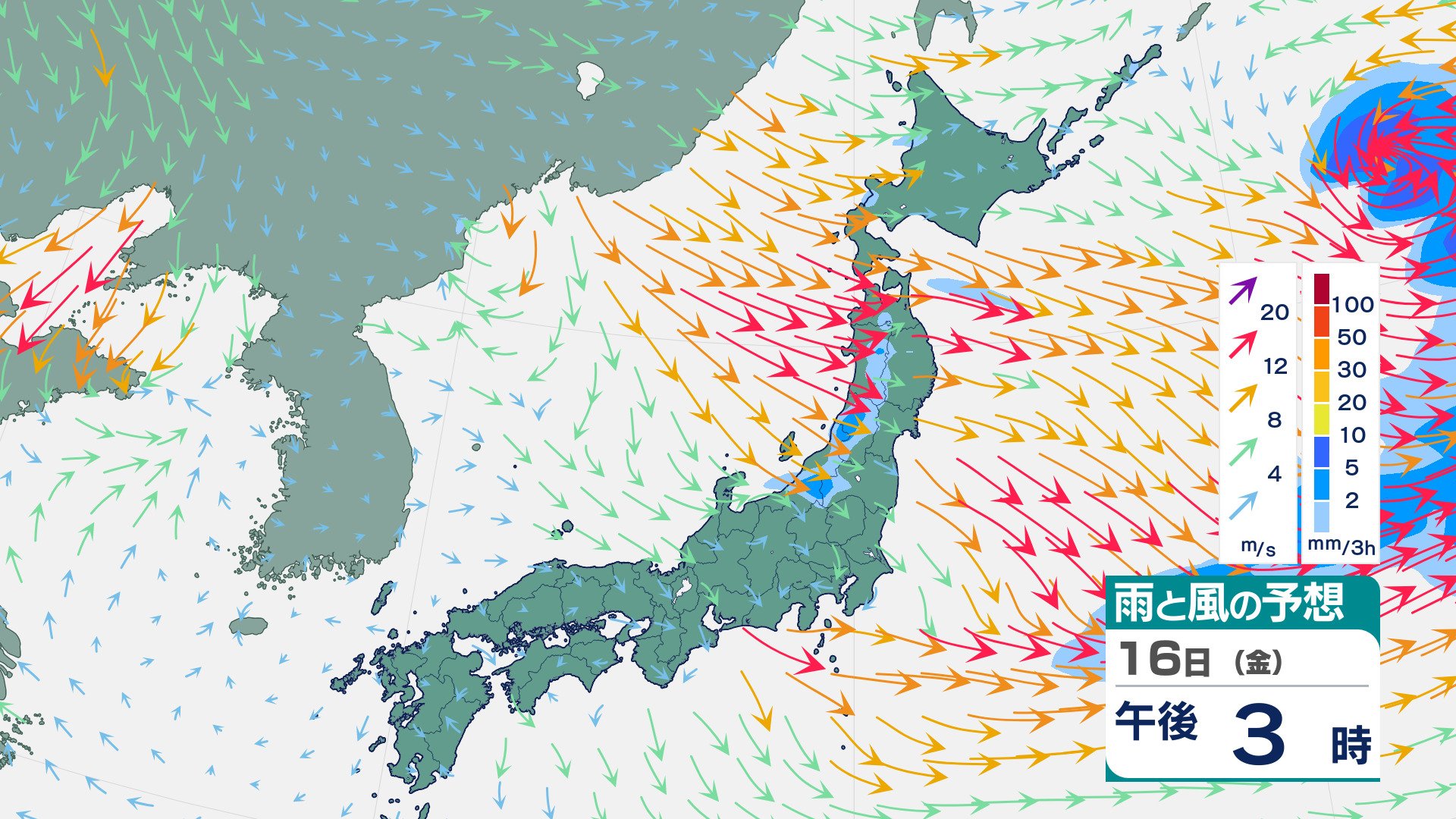 ニュースクリップ 北・東日本で落雷や激しい突風に注意 北陸など土砂災害に警戒 東北は30cm降雪予想 16日にかけ大気不安定に【雨と風のシミュレーション】 2026年1月15日(木) 21:28 国内 16日(金)の雨と雪のシミュレーション