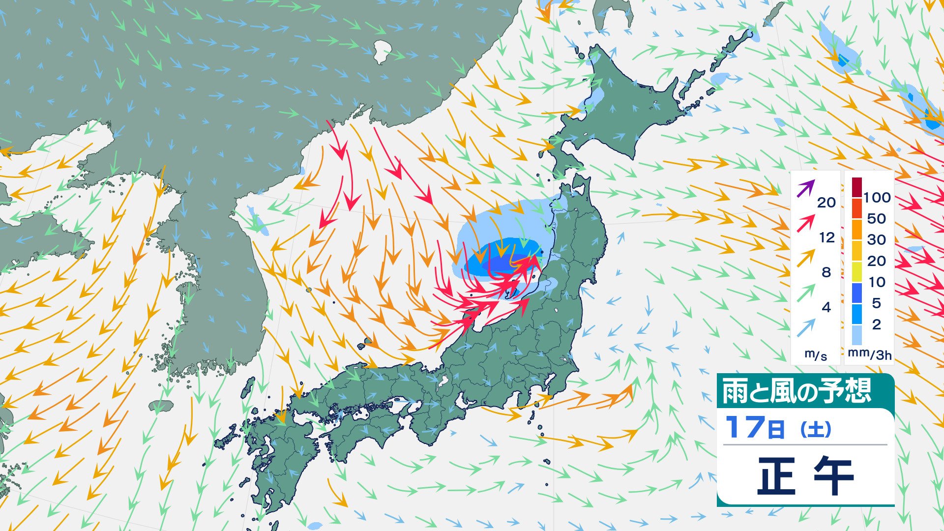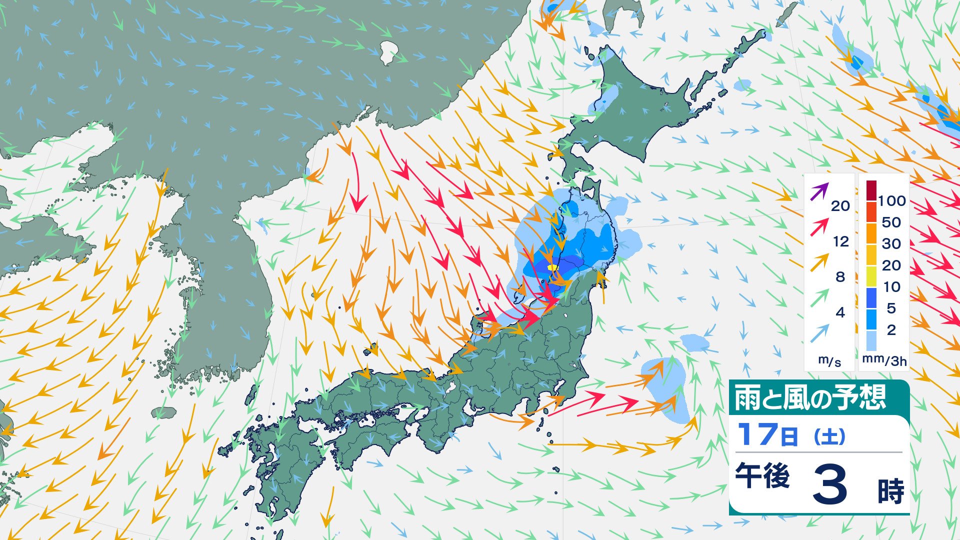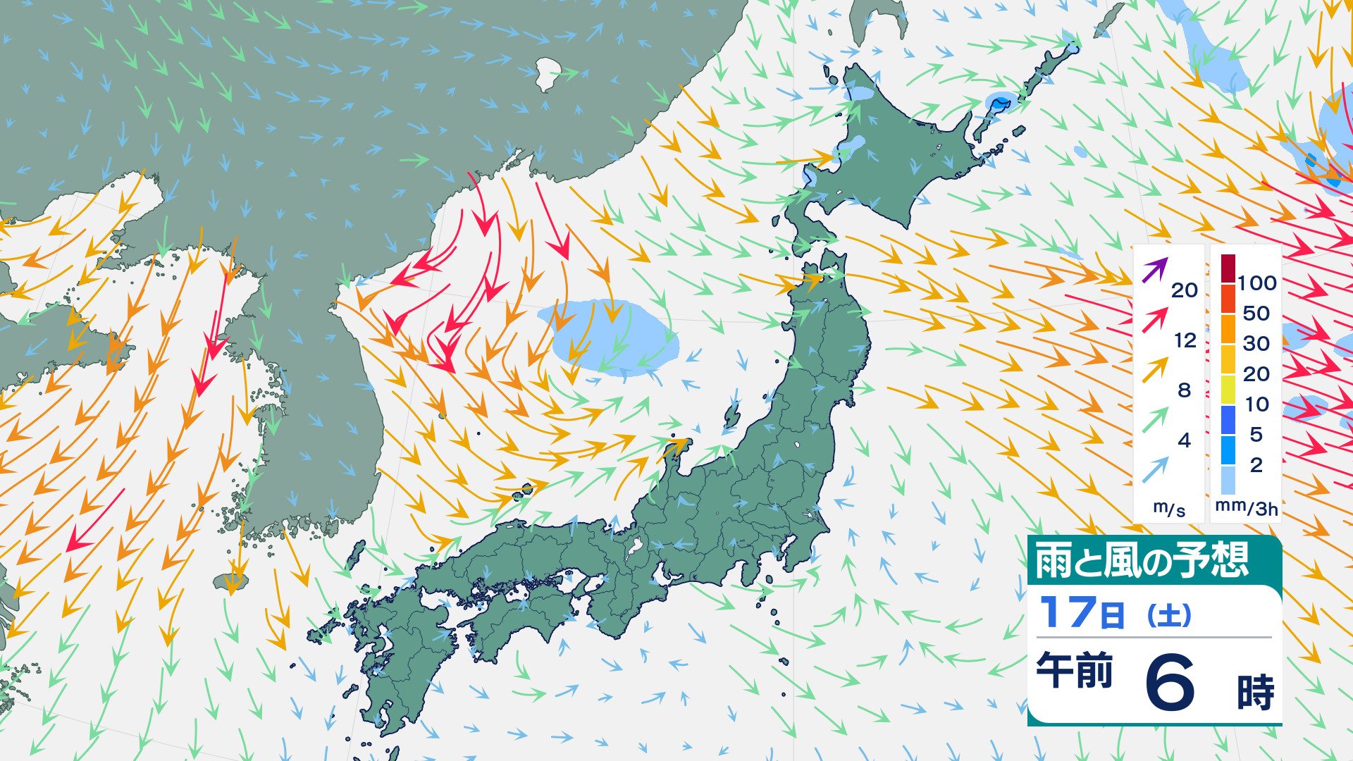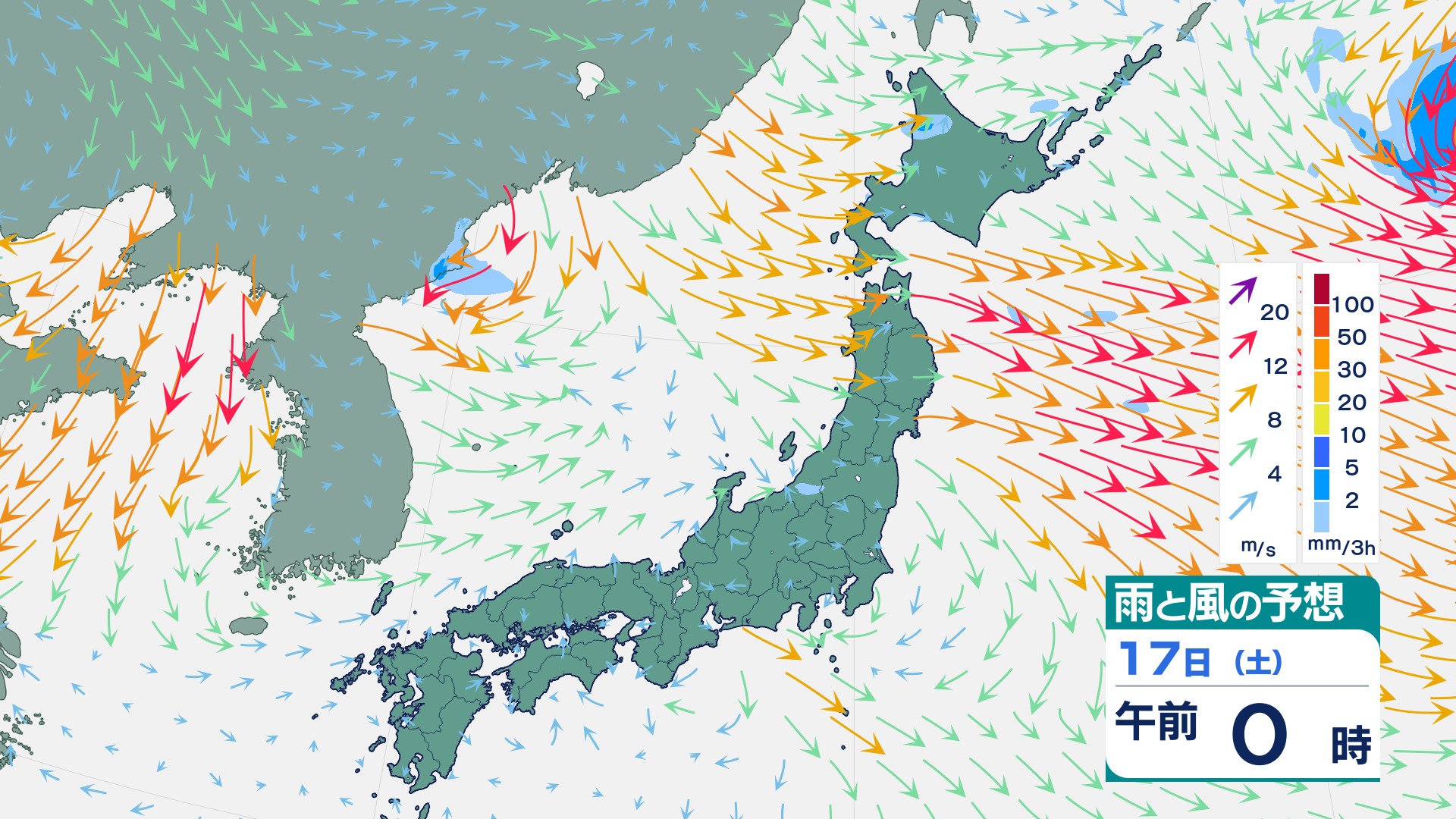 ニュースクリップ 北・東日本で落雷や激しい突風に注意 北陸など土砂災害に警戒 東北は30cm降雪予想 16日にかけ大気不安定に【雨と風のシミュレーション】 2026年1月15日(木) 21:28 国内 17日(土)の雨と雪のシミュレーション