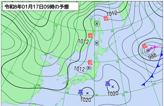 気象庁によりますと、17日は低気圧が発達しながら日本海から三陸沖に進む見込みです。低気圧に向かって湿った空気が流れ込むため、北陸地方では大気の状態が非常に不安定となり、局地的に積乱雲が発達する見込みです。