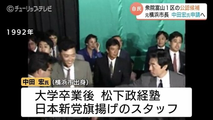 中田氏は横浜市出身で、大学卒業後、松下政経塾の出身で日本新党の旗揚げのスタッフとして活躍。