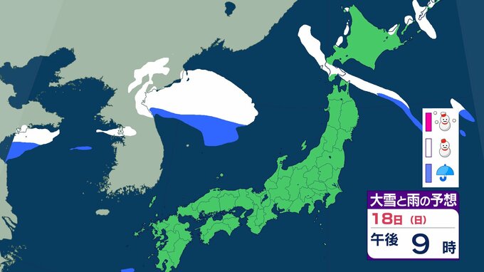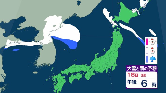 ニュースクリップ 21日から25日ごろ 北日本~西日本の日本海側中心に大雪のおそれ 雪雲停滞で“警報級”の可能性も 【雨と雪のシミュレーション】 2026年1月18日(日) 15:47 国内 天気 18日(日)の雨と雪のシミュレーション