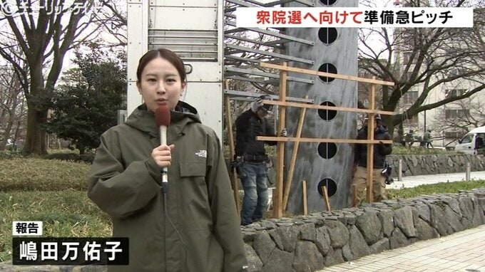嶋田記者:「来月にも行われる衆議院選挙に向けて、富山市役所前では慌ただしく準備が始まっています」