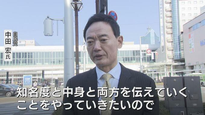 「みなさん、こんにちは、富山市針原の中田宏でございます。自民党富山県第1区支部長であります。富山の中田、富山の中田宏、ぜひみなさんには応援をいただければと思います」