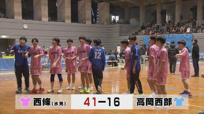 まずは、男子です。去年の春中ハンドで連覇を遂げた氷見市の西條が高岡西部と対戦しました。