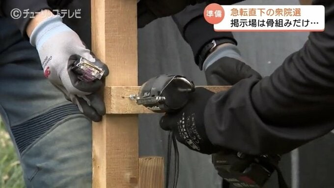 ニュースクリップ まずは “骨組みだけ” 設営…夕方の “解散表明” 前に 早くもポスター掲示板の作業 苦渋の決断で異例の対応 富山 2026年1月19日(月) 20:55 国内 暮らし・マネー 先行作業で「骨組み」のみ、異例の対応… 今回は解散表明から公示日まで時間がないことが予想されるため、本来、ポスターを貼るための「板」まで一度に取り付けるところを、この日は「骨組みのみ」を先行して設置する対応がとられました。