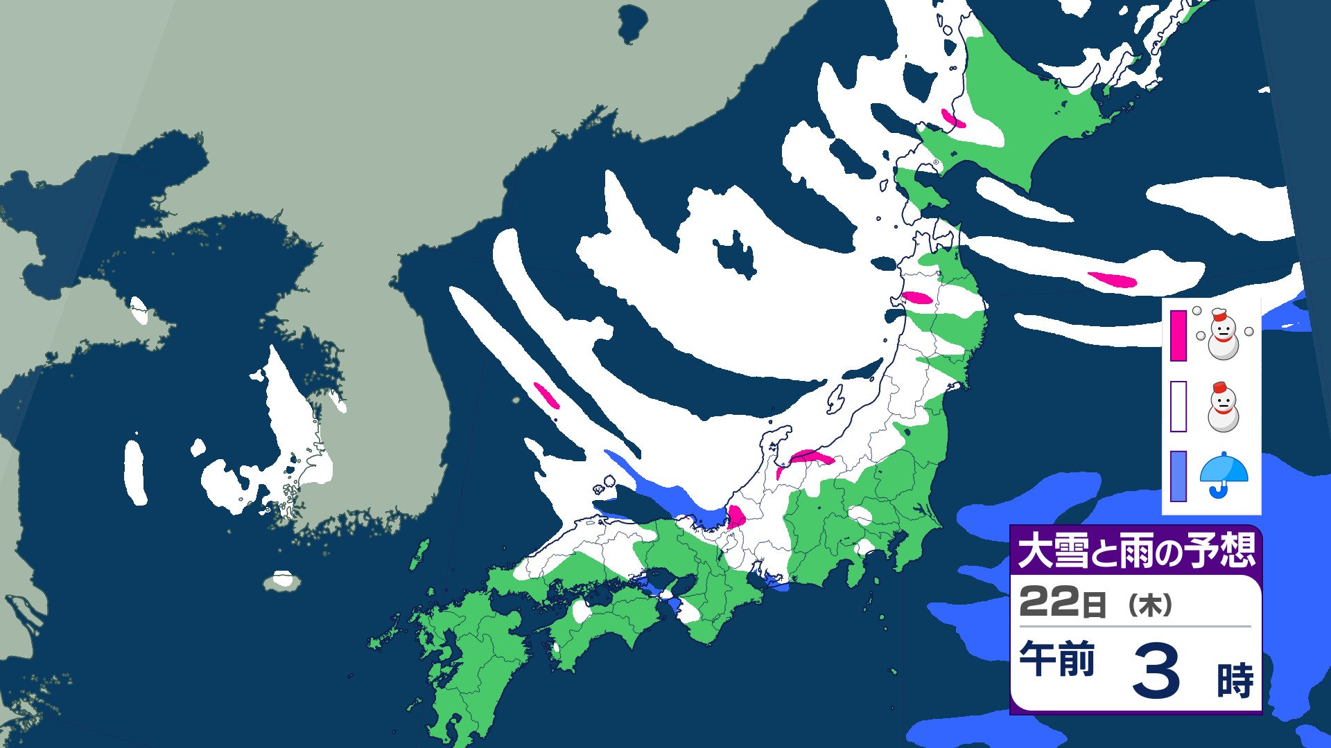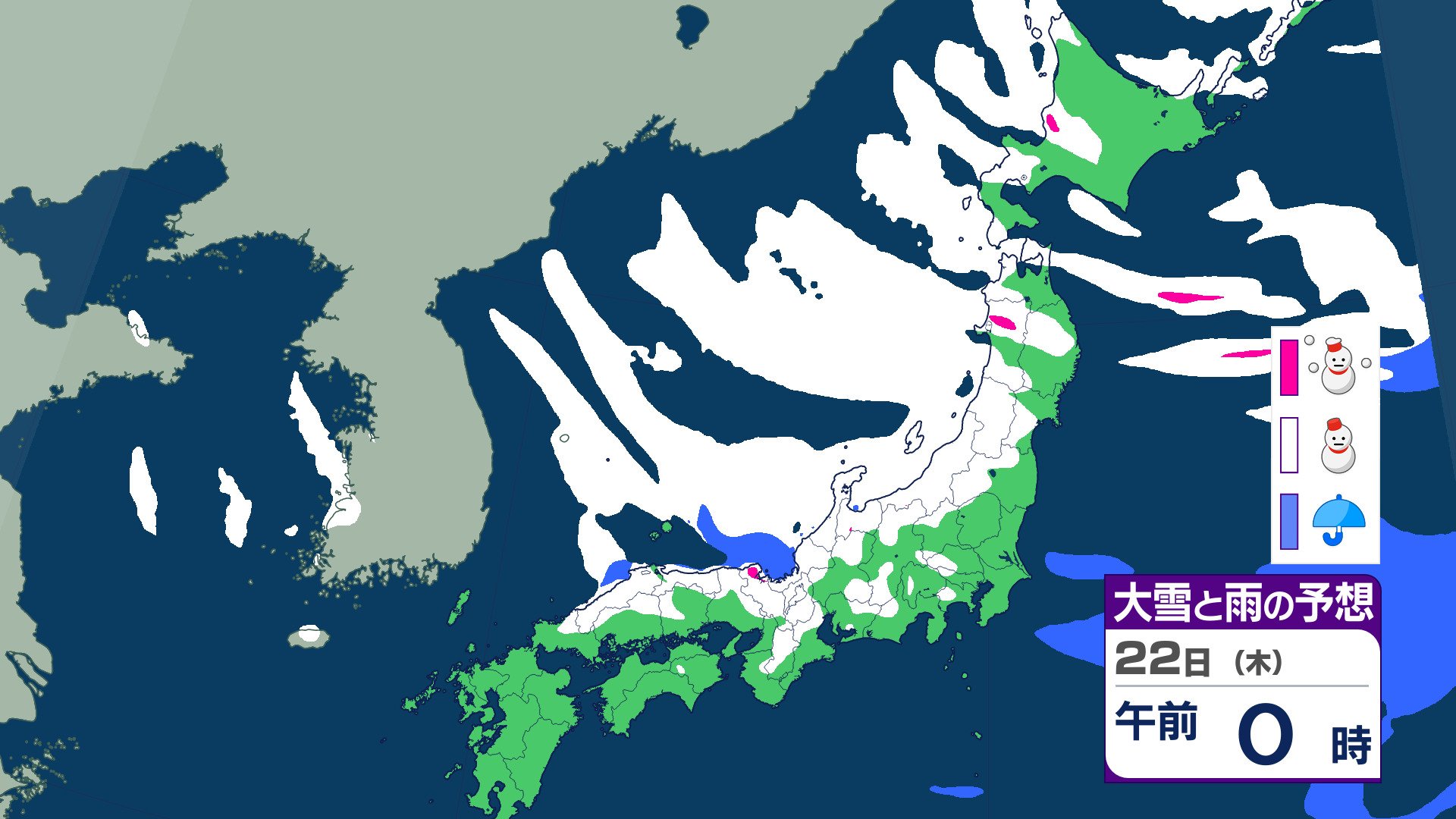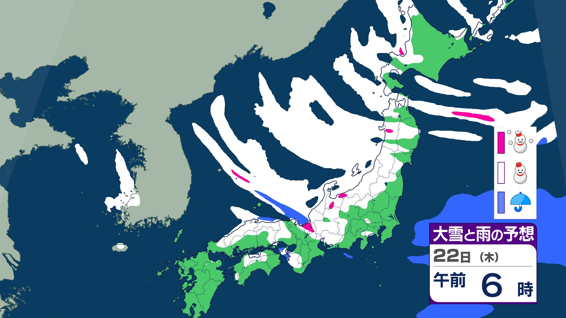 ニュースクリップ 【大雪情報】上空5000メートルにマイナス36℃以下の寒気 新潟で山沿い 100センチ、平地 40センチ予測…21日から25日頃にかけ交通障害に注意・警戒【雪と雨のシミュレーション】 2026年1月20日(火) 07:34 国内 天気 22日(木)雪と雨のシミュレーション