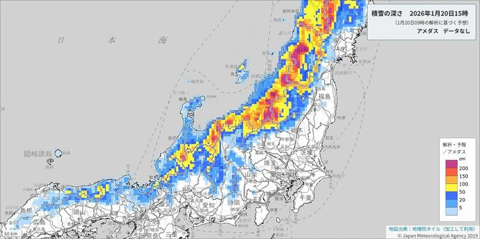 予想より寒気が強まった場合や雪雲が同じ地域に流れ込み続けた場合には、警報級の大雪となる可能性があります。