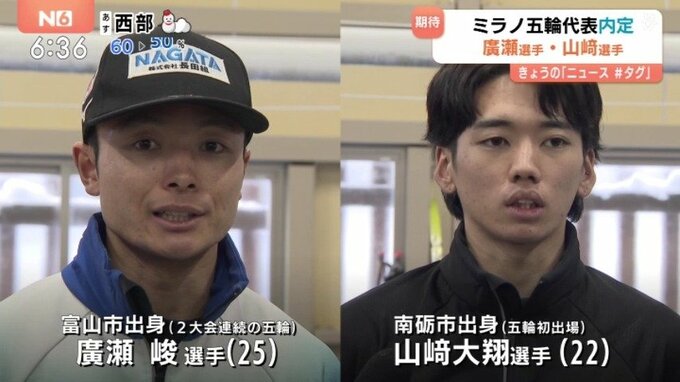 全日本スキー連盟は20日、来月開幕するミラノ・コルティナ五輪の代表に内定した選手52人を発表しました。富山県勢では、クロスカントリースキーの代表候補に、富山市出身の廣瀬崚選手(25、T.A.C SkiTeam所属)と、南砺市出身の山﨑大翔選手(22、となみ衛星通信テレビSC所属)が選ばれました。
