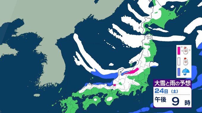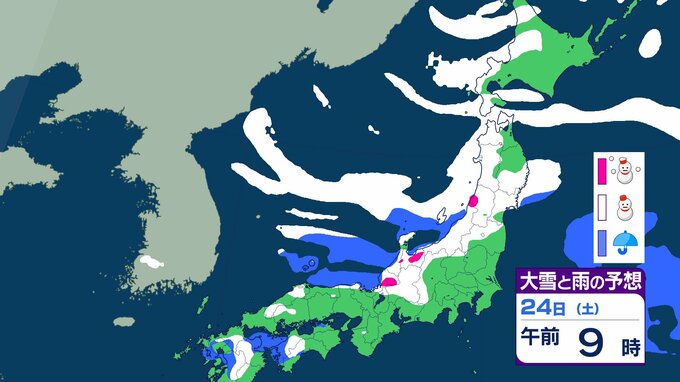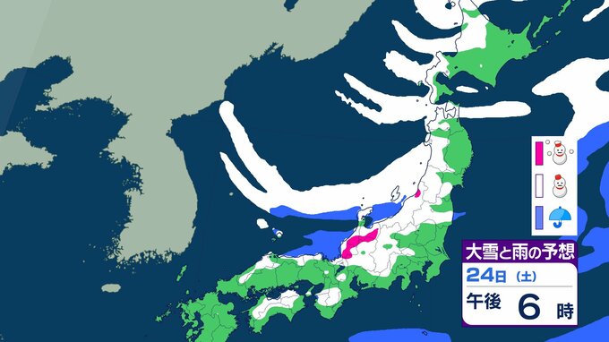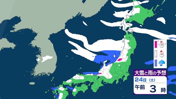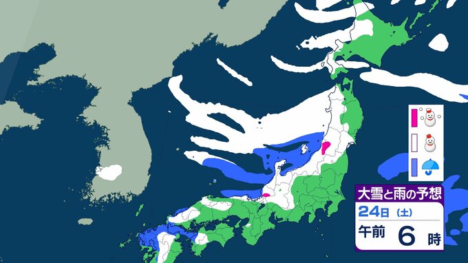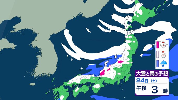 ニュースクリップ 【大雪情報】北陸・近畿・中国 22日にかけて大雪に警戒 最大で80cm降雪予想 太平洋側で大雪になるところも 【雪と雨のシミュレーション】 2026年1月21日(水) 09:22 国内 天気 24日(土)の雨と雪のシミュレーション