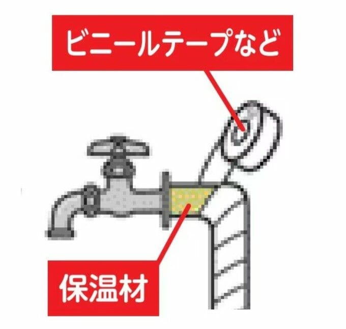 最強寒波!25日頃まで “水道管凍結” に最大限の警戒を すぐできる3つの防止策と地域別問い合わせ窓口【富山市】 2026年1月21日(水) 15:57 国内 1.屋外の水道管は保温材を巻き付ける 屋外で露出している水道管は、保温材(または布や発泡スチロールなど)を巻きつけたうえでビニールテープを巻くことが効果的です。