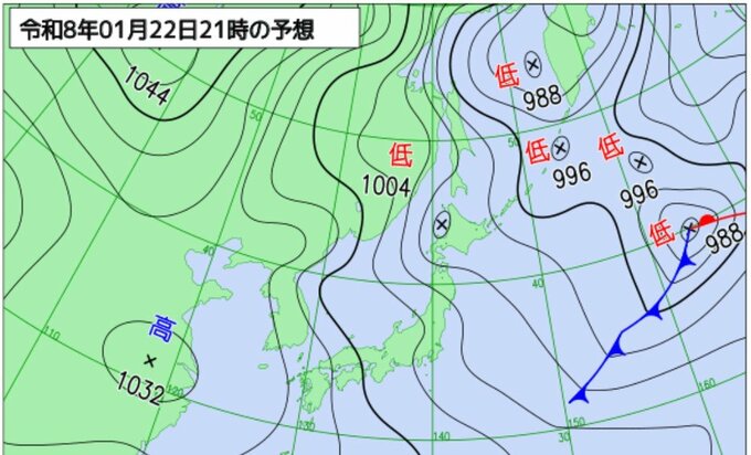 22日夜遅くにかけて警報級大雪の可能性も