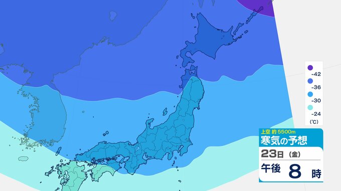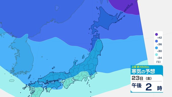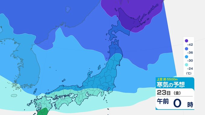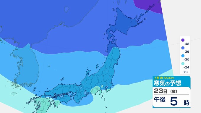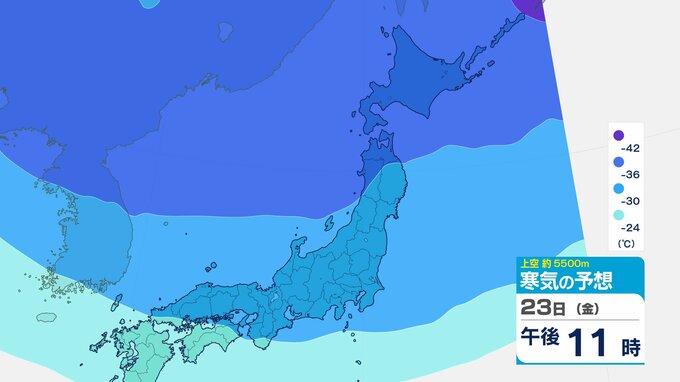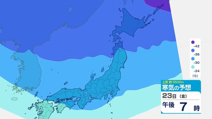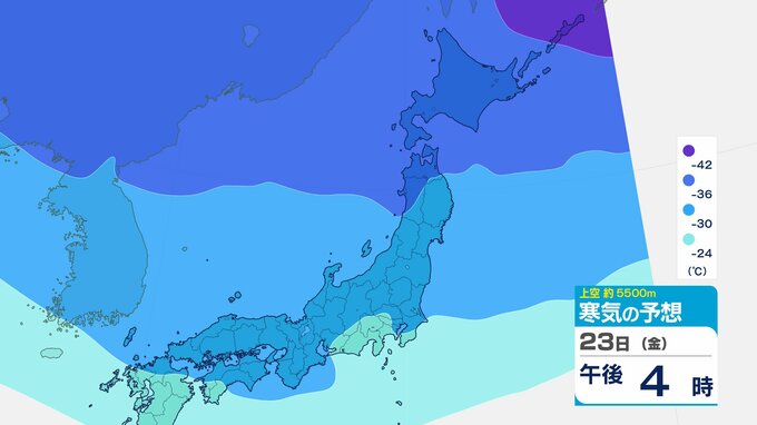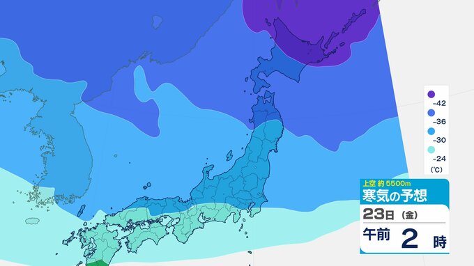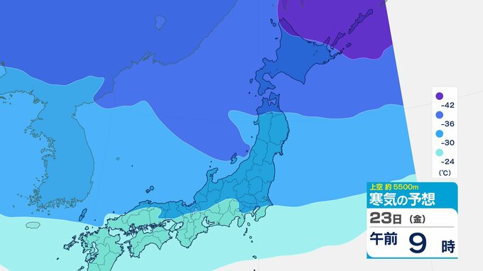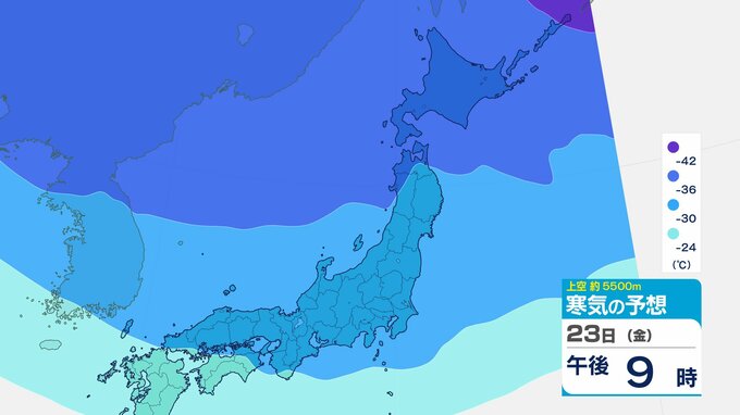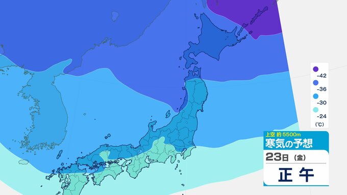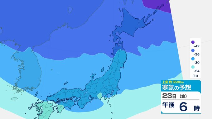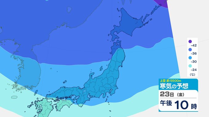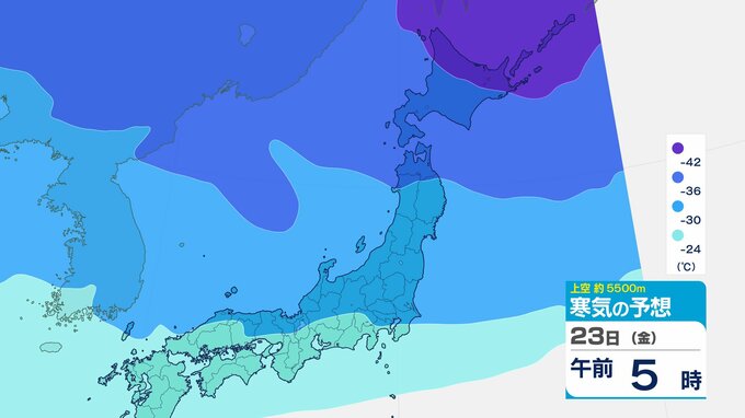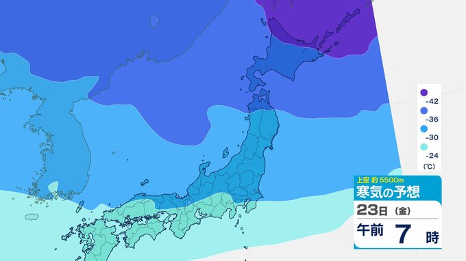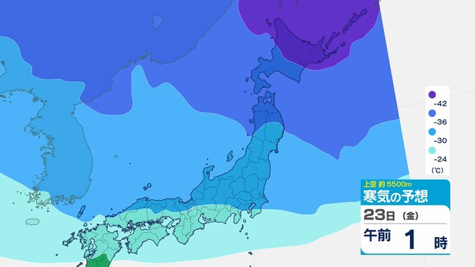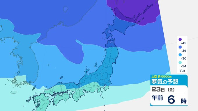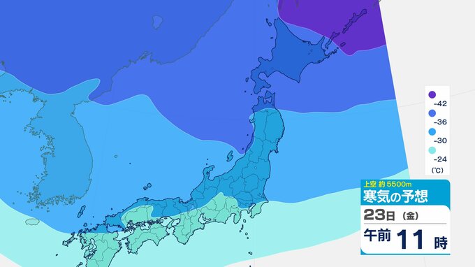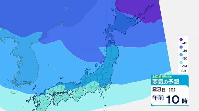 ニュースクリップ 【寒波いつまで?】岐阜県の山地で最大70センチ予想 東海地方は25日頃まで強い冬型続く 愛知・三重も積雪や凍結による交通障害に注意【上空の寒気シミュレーション】 2026年1月22日(木) 15:50 国内 天気 23日(金)寒気の動きシミュレーション