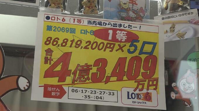 当せん金額は5口合計で4億3,409万6,000円に上ります。当せん番号は「06、17、23、27、33、35」でした。このうち何人の人が当せんしたかは分かっていません。