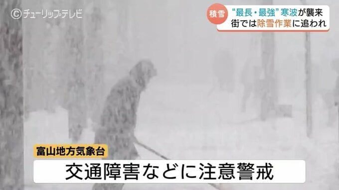 今シーズン最強寒波の到来で、富山県内は昨夜から断続的に雪が降っています。強い冬型の気圧配置は25日まで続く見込みで、気象台は交通障害などに注意・警戒を呼びかけています。