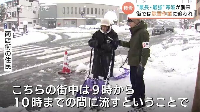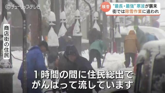 南砺市の城端地域では、除雪した雪を用水路に流せる時間が決まっているため、住民たちが総出で作業にあたっていました。