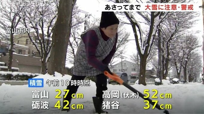 ニュースクリップ 23日(金)の富山県内は朝から断続的に雪…あさって25日(日)まで交通障害などに注意・警戒を呼びかけ 2026年1月23日(金) 11:51 国内 この冬、もっとも強い寒波の影響で、富山県内は断続的に雪が降っています。気象台はあさってまで大雪による交通障害などに注意・警戒を呼びかけています。富山県内各地の積雪は午前10時時点で、富山で27センチ高岡…