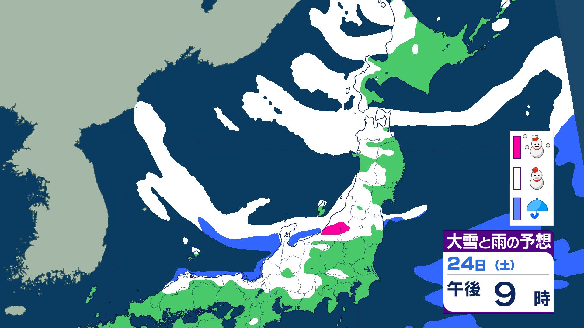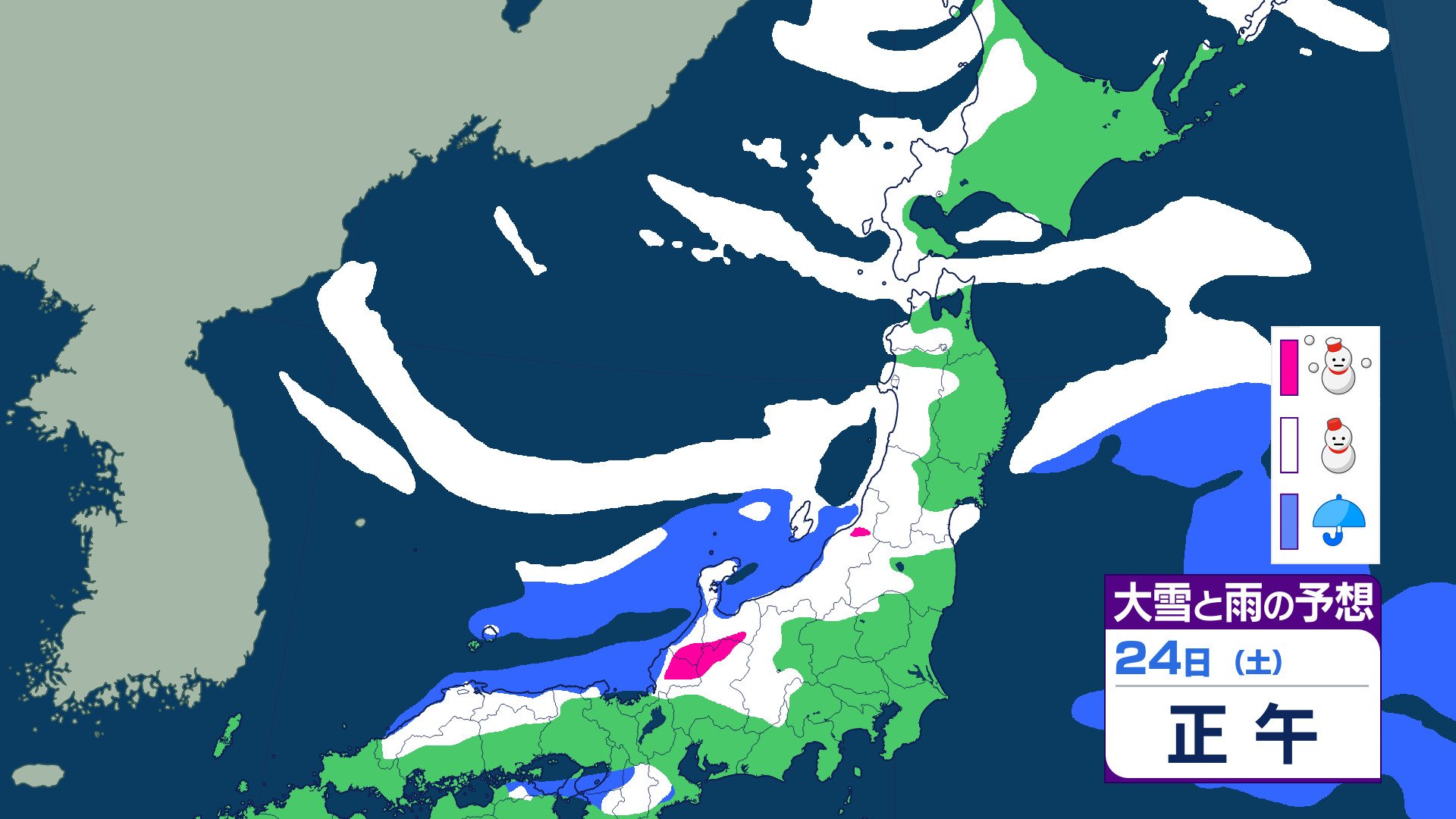 ニュースクリップ 【大雪情報】東海地方 岐阜県では警報級の大雪に25日朝まで多い所で80センチの降雪予想 愛知県でも24日夜のはじめ頃から警報級の大雪となる可能性【雪と雨のシミュレーション】 2026年1月24日(土) 07:47 国内 天気 24日(土)雪と雨のシミュレーション