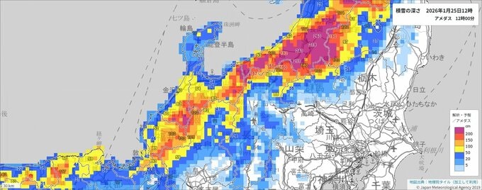 気象庁によりますと、日本付近は25日は強い冬型の気圧配置が続くでしょう。このため、北陸地方では25日夜遅くにかけて山沿いや山地だけでなく、平地でも大雪となるでしょう。予想より寒気が強まったり、雪雲が同じ地域に流れ込み続けた場合は、警報級の大雪となる可能性があります。