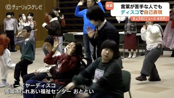 富山県高岡市の社会福祉法人「くるみ」が24日、障がいのある人もない人も一緒になって楽しめる音楽イベント「ニューイヤーディスコ」を初めて開催しました。