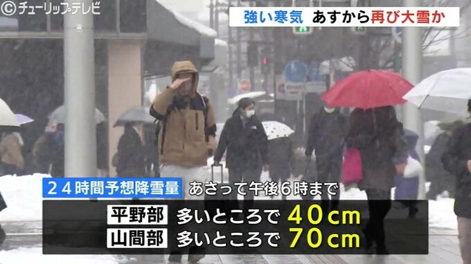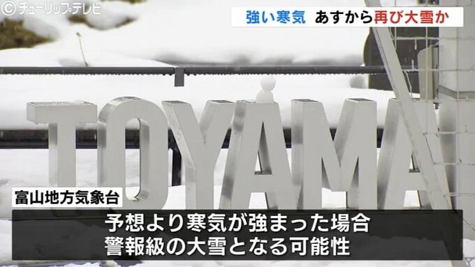 富山地方気象台は予想より寒気が強まった場合は、警報級の大雪となる可能性があるとして交通障害などに注意・警戒を呼びかけています。