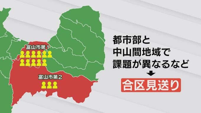 また、富山市の第1選挙区と第2選挙区の合区は、都市部と中山間地域で課題が異なることなどを理由に、見送られました。