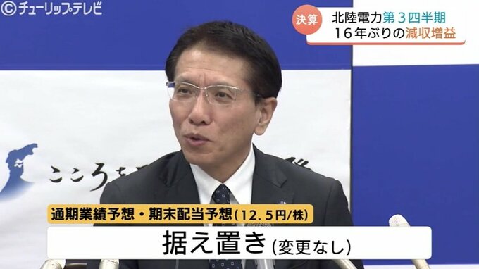 北陸電力は、七尾大田火力発電所2号機が去年の落雷によるトラブルで停止中で、復旧時期の見通しが立っていないことから、通期業績予想および期末配当予想は据え置くとしました。