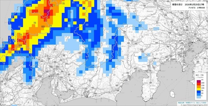 関東甲信地方の上空約5500メートルに氷点下33度以下の強い寒気が流れ込む影響で、関東甲信地方では30日にかけて雪や雨の降る所があり、30日明け方にかけて関東地方の平野部でも積雪となる所があるでしょう。