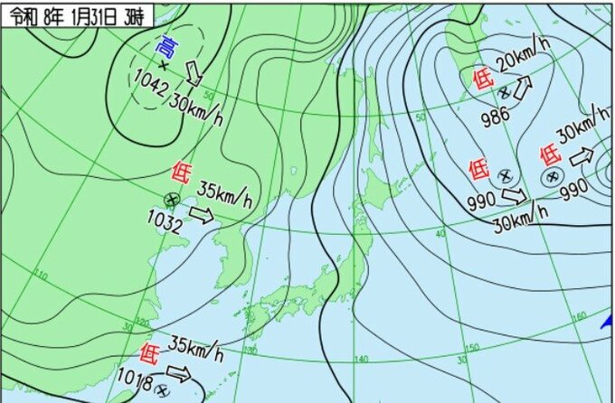 日本付近は31日も冬型の気圧配置が続き、北日本から東日本の日本海側を中心に大雪や強風、高波に警戒が必要な状況となっています。