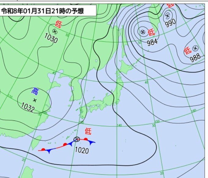 冬型の気圧配置はあす1日(日)にかけて続きます。北日本では氷点下12℃以下、東日本から西日本では氷点下6℃以下の寒気に覆われる見込みです。