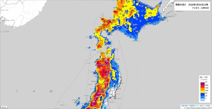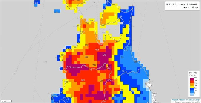 気象庁によりますと、日本付近は冬型の気圧配置となっており、2月1日から2日にかけて、東北地方の上空約5000メートルには、氷点下36度以下の寒気が流れ込む見込みです。 このため、津軽と三八上北では、大雪となる所があるでしょう。発達した雪雲が同じ場所にかかり続けた場合には、警報級の大雪となる可能性があります。