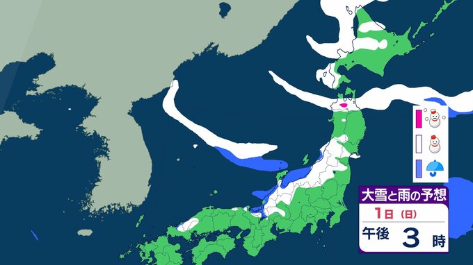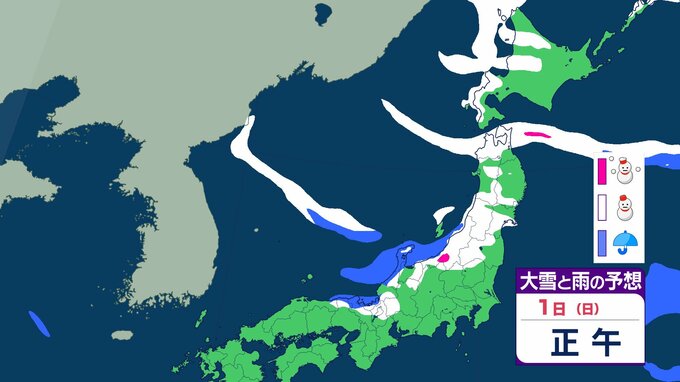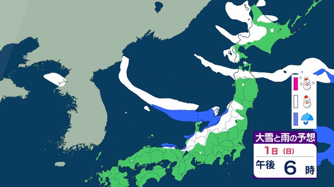 ニュースクリップ 北日本で6日ごろは荒天…低気圧が発達 発達の程度によっては大荒れのおそれ 7日から8日は冬型の気圧配置に【雪と雨のシミュレーション】 2026年2月1日(日) 12:39 国内 天気 1日の雨と雪のシミュレーション