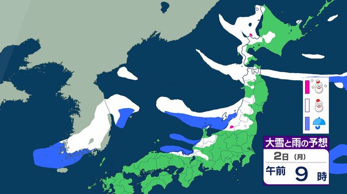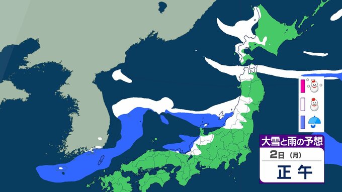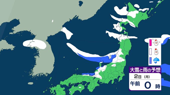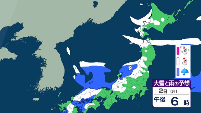 ニュースクリップ 北日本で6日ごろは荒天…低気圧が発達 発達の程度によっては大荒れのおそれ 7日から8日は冬型の気圧配置に【雪と雨のシミュレーション】 2026年2月1日(日) 12:39 国内 天気 2日の雨と雪のシミュレーション