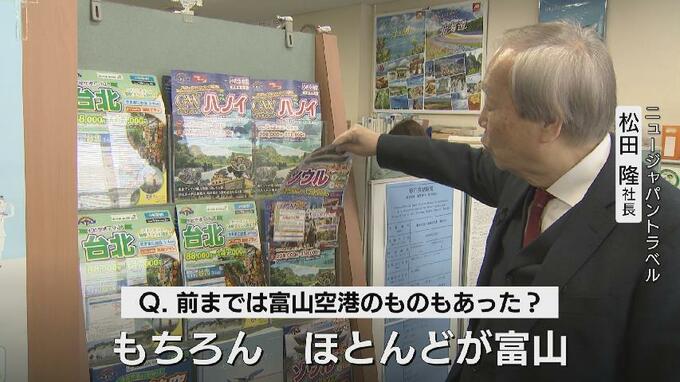 これまで経営の柱だった富山空港の定期便を利用した旅行パッケージも相次ぐ運休により、現在は小松空港発着の商品へシフトチェンジせざるを得ない状況です。