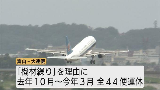 富山と大連を結ぶ直行便を運航する中国南方航空は「機材繰り」を理由に、去年10月から今年3月までの全44便で運休を発表。地元空港が使えなくなってから女性は富山から3時間以上かけて名古屋市へ移動中部国際空港から帰省することを余儀なくされていました。